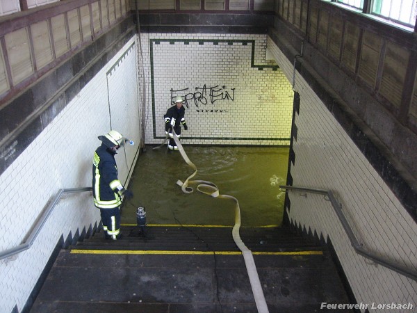 | Einsatzbericht: | Dies war der vierte Einsatz innerhalb von 48 Stunden, um die Unterführung am Lorsbacher Bahnhof auszupumpen. Die von der Bahn provisorisch installierte Pumpe funktionierte nicht. Die DB AG ist offensichtlich weiterhin nicht in der Lage für Sicherheit und Ordnung am Lorsbacher Bahnhof zu sorgen. |