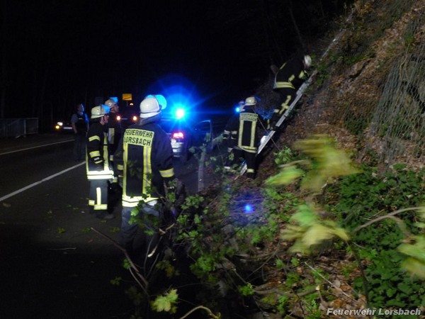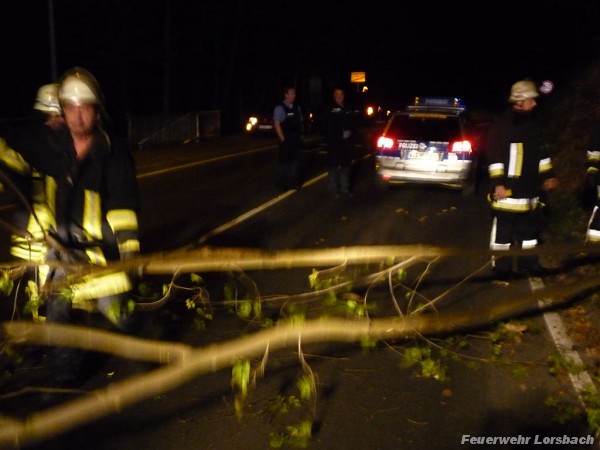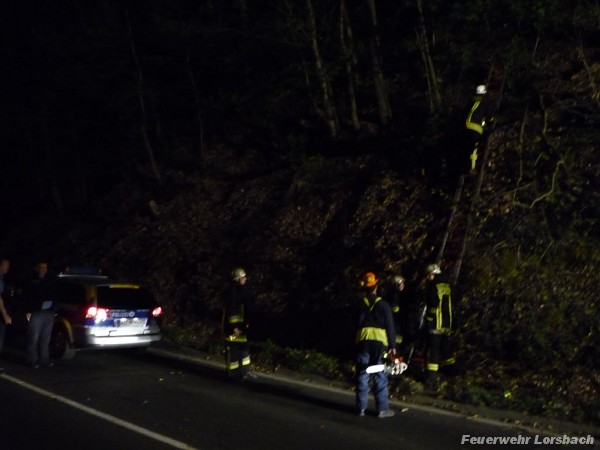 | Einsatzbericht: | Durch starke Windböen wurde an der L 3011 am Ortsausgang Richtung Eppstein ein oberhalb der Straße am Steilhang stehender Baum entwurzelt. Der umgestürzte Baum ragte in die Fahrspur Richtung Eppstein. Ein Autofahrer, der dem Hindernis in der Dunkelheit gerade noch ausweichen konnte, alarmierte die Feuerwehr. Diese entfernte das gefährliche Verkehrshindernis unter Einsatz einer Leiter und einer Motorkettensäge. Nachdem die Straße freigeräumt war, wurde sie von der Polizei wieder freigegeben. |