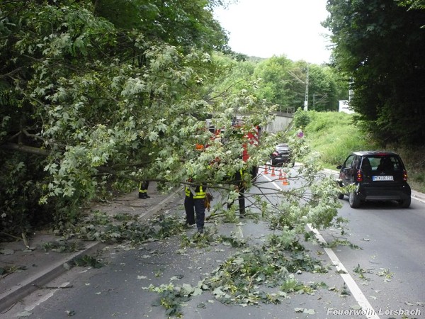 | Einsatzbericht: | Bei ruhigem Wetter stürzte überraschend ein Baum auf die L 3011 zwischen Lorsbach und Eppstein. Dabei wurde ein vorbei fahrendes Fahrzeug beschädigt. Verletzte gab es glücklicherweise nicht. Die Feuerwehr Lorsbach zersägte den Baum mit einer Motorkettensäge und räumte ihn an den Straßenrand. |