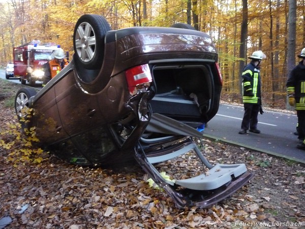| Einsatzbericht: | Auf der Landstraße zwischen Lorsbach und Langenhain kam ein PKW von der Straße ab, überschlug sich und blieb am Straßenrand auf dem Dach liegen. Der Fahrer wurde dabei verletzt. Die Feuerwehr sicherte die Einsatzstelle ab und leistete bis zum Eintreffen des Rettungsdienstes Erste Hilfe. |