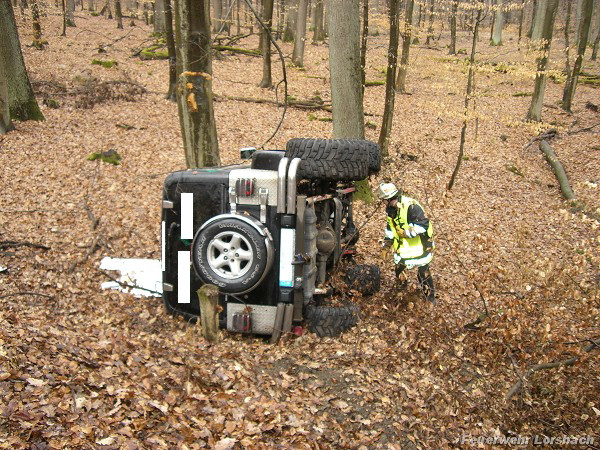 | Einsatzbericht: | Die Feuerwehr Lorsbach wurde am Sonntag um 14:08 Uhr zu einem Verkehrsunfall auf der Landstraße L3368 zwischen Lorsbach und Langenhain alarmiert. Ein Fahrzeug war von der Straße abgekommen und einen Hang hinabgerutscht. Das Fahrzeug kippte dabei auf die Seite und stieß gegen einen Baum. Der Fahrer wurde verletzt. Die Feruerwehr sicherte die Einsatzstelle ab und nahm auslaufende Betriebsstoffe auf. Danach half die Feuerwehr bei der Bergung des Fahrzeuges durch den Abschleppdienst. Der Einsatz dauerte etwa zwei Stunden. Gleichzeitig wurde an der selben Stelle, unabhängig vom Verkehrsunfall, in einem weiteren Einsatz ein Ast beseitigt, der auf die Straße zu stürzen drohte. |