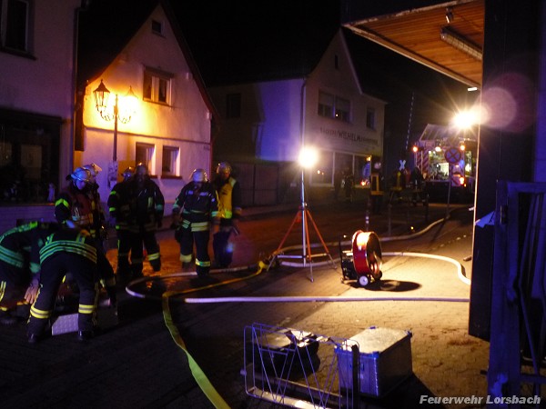 | Einsatzbericht: | Aufmerksame Passanten hatten am Gebäude des Lorsbacher Lebensmittelladens Brandgeruch wahrgenommen und verrußte Schaufensterscheiben erkannt. Daraufhin alarmierten sie die Feuerwehr. Nachdem die Feuerwehr sich Zugang zum Gebäude verschafft hatte, wurde das Feuer im Verkaufsraum des Ladens von zwei Feuerwehrtrupps unter Atemschutz gelöscht. Bei den folgenden zeitaufwändigen Nachlöscharbeiten, wurden unter anderem ein großer Teil der abgehängten Decke entfernt und umfangreiche Belüftungsmaßnahmen durchgeführt. Dadurch konnte der Einsatz erst um 3:20 Uhr abgeschlossen werden. Durch den Brand wurden im Gebäude erhebliche Schäden verursacht. Im Bereich der Einsatzstelle mussten beide Durchgangsstraßen gesperrt werden. Es war jedoch eine innerörtliche Umfahrung möglich. Es waren 41 Feuerwehrleute und weitere Einsatzkräfte von Technischem Hilfswerk, Rettungsdienst und Polizei im Einsatz. |
