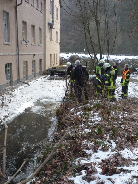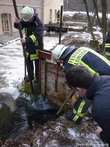 | Einsatzbericht: | Durch starke Vereisung im Ablauf eines ehemaligen Mühlgrabens staute sich in diesem das Wasser. Es bestand die Gefahr, dass dadurch Wasser in ein Gebäude eindringt. Die Feuerwehr beseitigte die Vereisung und sorgte für freien Ablauf des Wassers. |
