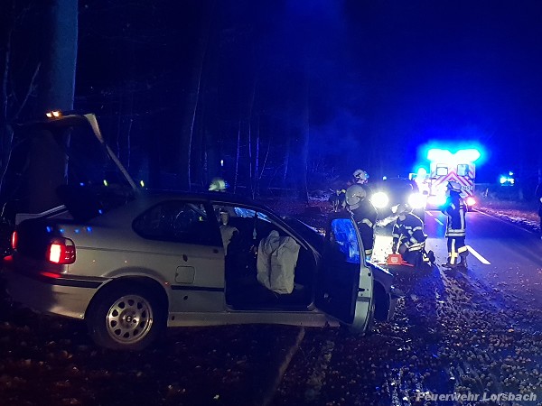 | Einsatzbericht: | Am späten Nachmittag des 02.01. wurde die Feuerwehr zu einer technischen Hilfeleistung auf die Landstraße zwischen Lorsbach und Langenhain alarmiert. Dort verunfallte ein BMW bei nasser Straße im Verlauf einer Kurve und prallte gegen einen Baum. Glücklicherweise wurde niemand im Fahrzeug eingeklemmt. Der Fahrer konnte das Fahrzeug selbständig verlassen und wurde vom Rettungsdienst medizinisch versorgt und in eine Klinik gebracht. Wir sperrten in Absprache mit der Polizei die Straße, klemmten die Batterie des PKW ab, um einen Fahrzeugbrand auszuschließen und leuchteten die Einsatzstelle umfangreich aus. Im Anschluss reinigten wir die Fahrbahn. Bis zum Eintreffen eines Abschleppfahrzeugs blieb die Straße vollgesperrt. |