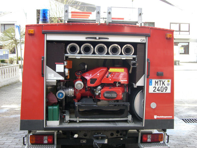 Im rückwärtigen Geräteraum befindet sich die namensgebende Tragkraftspritze des Fahrzeugs, eine TS 8/8, verladen. Diese tragbare Pumpe kann 800 Liter Wasser pro Minute bei einem Druck von 8 bar fördern. Die Pumpe wiegt etwa 190 Kilogramm und kann so von vier Feuerwehrleuten zum Einsatzort getragen werden, wenn das Fahrzeug den gewünschten Pumpenstandort nicht erreichen kann oder das restliche Material des Fahrzeuges noch an anderer Stelle benötigt wird.