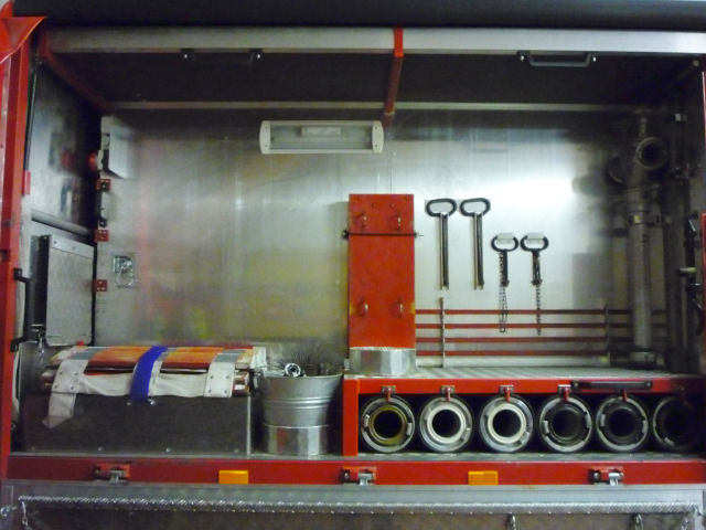 Im Geräteraum 4 sind das Kaminkehrerwerkzeug, die A-Ansaugschläuche, sowie das Standrohr und die verschiedenen Hydrantenschlüssel verladen.