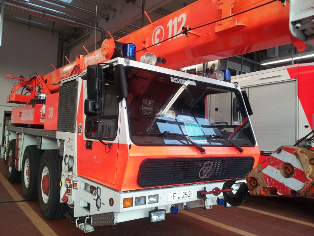 Am Dienstag, den 23.04.2013, besuchte die Jugendfeuerwehr Lorsbach die Wache 30 der Berufsfeuerwehr Frankfurt am Main in Sossenheim. In zwei aufgeteilten Gruppen konnten sich die Kinder und Jugendlichen die Wache an sich und die Fahrzeuge anschauen. Die beiden Höhepunkte des Ausfluges waren zum einen der Kranwagen, auf dem die Jugendfeuerwehr Platz nehmen durfte und die Fahrt im Drehleiterkorb, von welchem aus man über weite Teile von Frankfurt blicken konnte.