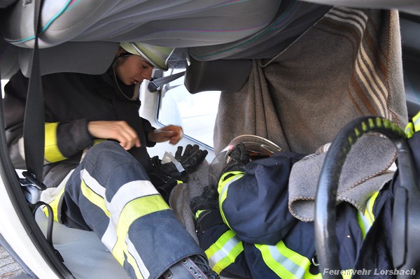 Am Samstag, den 17. Oktober, übte die Feuerwehr Lorsbach die Technische Hilfeleistung nach Verkehrsunfällen. Bei mit zwei Schrottfahrzeugen nachgestellten Unfällen wurden vorgeblich eingeklemmte Personen aus diesen Fahrzeugen befreit. Ein Fahrzeug lag dabei auf dem Dach und ein weiteres auf der Seite.